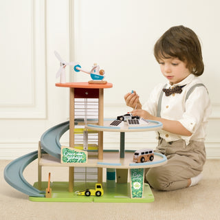 Lielais rotaļu koka parkings ar auto- eko enerģija