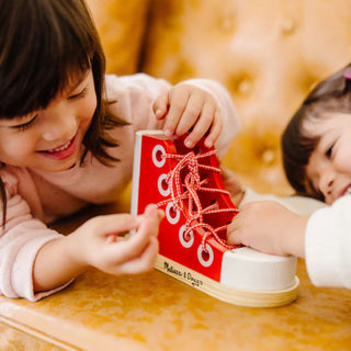 Kvalitatīva koka kurpe ar garu auklu, ko mazajām rociņām būs viegli manevrēt un sasiet. Caur rotaļu trenē sīko motoriku, acu-roku koordināciju, pacietību. Savukārt veiksmīga šņoru sasiešana sniegs bērnam gandarījumu un patstāvības sajūtu!